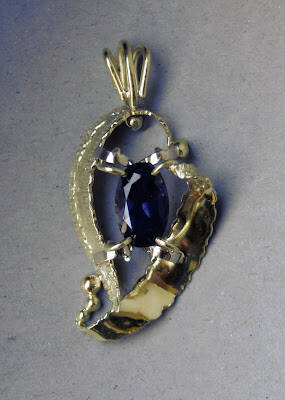 Hanger/pendeloque 14K geel/wit goud met ovaal gefaceteerde Ioliet